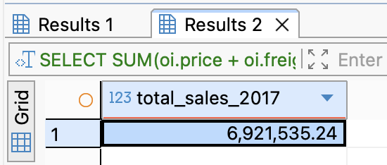 | Option 3 | sum(price) | Order date = 2017 AND order status = "delivered" |