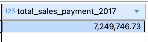 Answer 2: Total Sales for 2017 is: 6,155,806.98