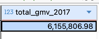 | Option 2 | GMV by sum(price) | Order date = 2017 |